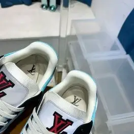 Cette version de la sneaker LV Trainer associe deux couleurs et deux matières : le nubuck et le cuir de veau grainé. Elle se distingue par ses détails en gomme et ses lacets dégradés. Créée à l’origine par Virgil Abloh, cette sneaker culte s’inspire des souliers de basket-ball vintage et porte la signature Louis Vuitton de style manuscrit sur le côté.