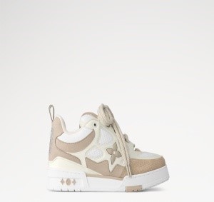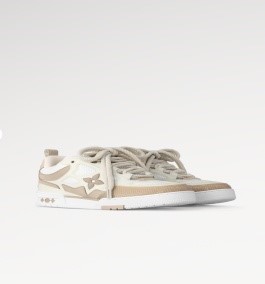 Cette sneaker LV Skate fait référence à un modèle inspiré des années 1990 et présenté pour la première fois au défilé Homme Automne-Hiver 2022 Louis Vuitton. Rehaussée de fleurs de Monogram, la tige bicolore élaborée est confectionnée dans un mélange de résille technique, de cuir de veau et de daim. Ce soulier se distingue par sa cheville matelassée, ses lacets doubles et sa semelle extérieure en gomme bicolore ornée de fleurs de Monogram.